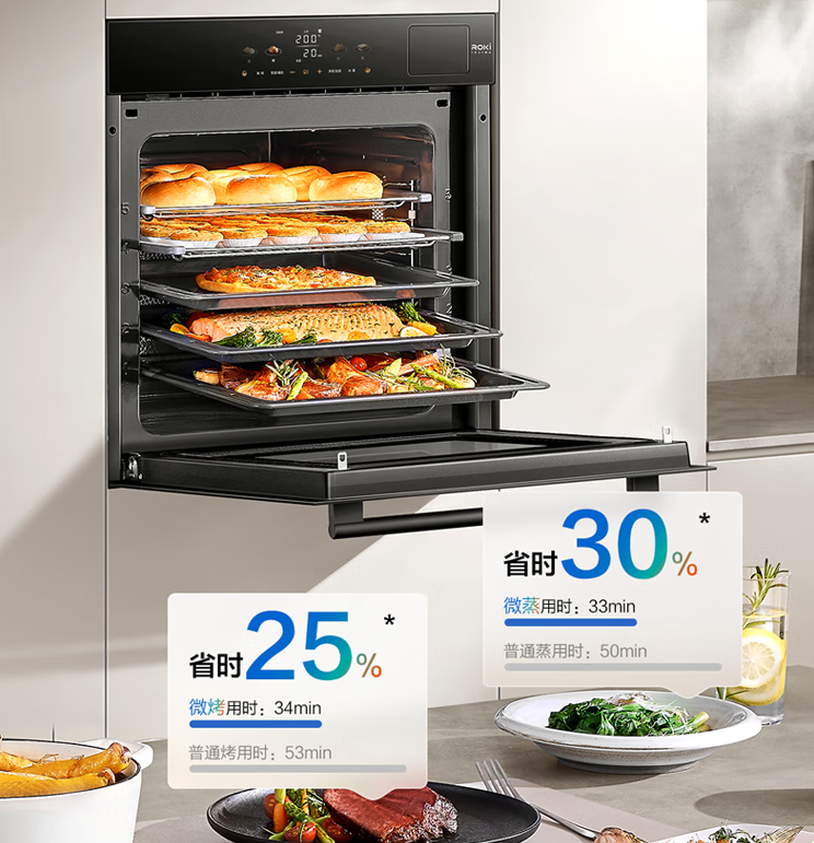 苏泊尔靠 “蒸汽嫩烤 + 百元级价差” 打穿中端市场:蒸汽直喷技术让蒸鱼鲜嫩,空气炸模式低脂少油,内置 50 + 家常菜谱,千元价位就能实现 “蒸烤自由”,堪称 “打工人友好款”。